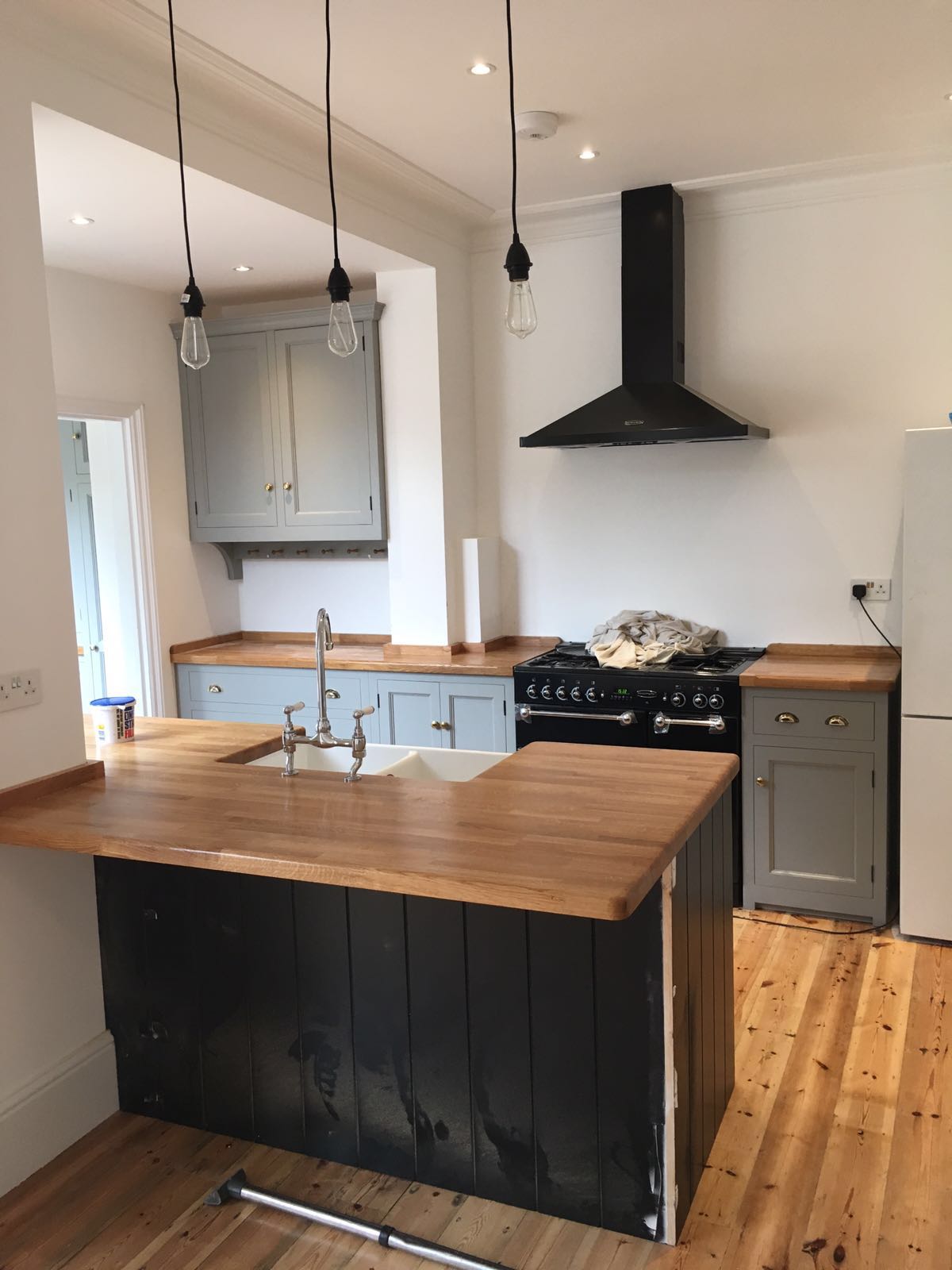 Together we managed to convert a small dining space into a spatious open kitchen and dining, with plenty of space to circulate, and a very lit space at the end, with a conservatory like extension that looks like a bay window.